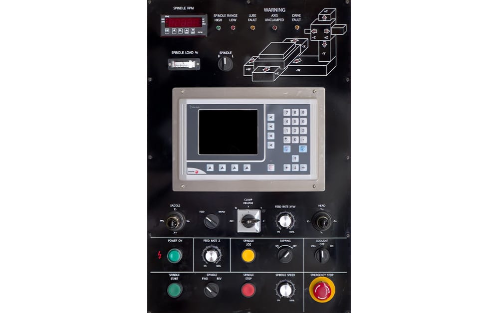 Standard Accessories: Precision hardened & ground bedways, fully automatic lubrication system, precision ground ballscrews with preloaded nuts on X/W/Z axes, state of the art electrics with PLC control, rapid traverse in all directions, full steel telescoping way covers on X & W axes, air power drawbar, built-in or auxiliary rotary table (model dependent), three/four axis electronic DRO, hydraulic clamping (X/Y/W axes)