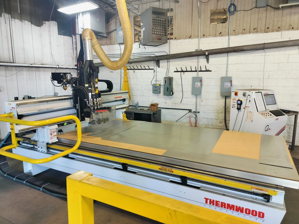 Thermwood QCore SuperControl, 1 TB SATA Hard Drive System, Quad Core Processor, 19-Inch Wide Full Color LCD Screen Monitor, 12 Horsepower HSD Spindle, 4- .75″ Popup Pins, 25 Hp Busch Vacuum Pump, Automatic Lubrication System