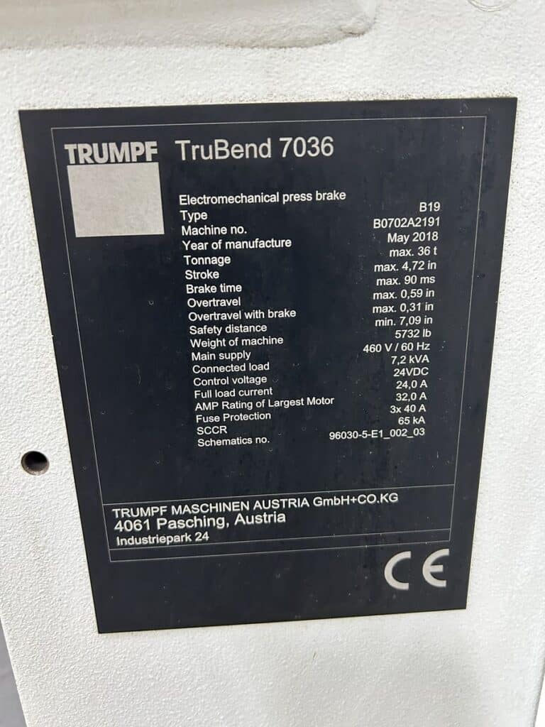 The Trump Trubend 7036 Press Brake can be demoed upon request.