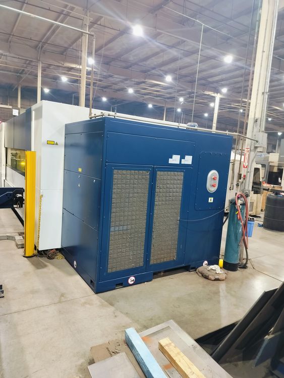 Full Gantry Automated Loading/Unloading System, Dual Shuttle Tables, Automatic Pallet Changer, Automatic Nozzle Changer, Single Cutting Head, Trumpf CNC Touchscreen Control, TruTops Boost Software, FlyCut High-Speed Piercing, PierceLine, CoolLine, Drop&Cut, DetectLine Focus Control, Nitrogen/Oxygen Cutting Capable, Integrated Dust Extraction Interface, External Chiller Included, Fully Enclosed Safety Cabin, Excellent Condition, 15681 Operating Hours, Under Power For Inspection