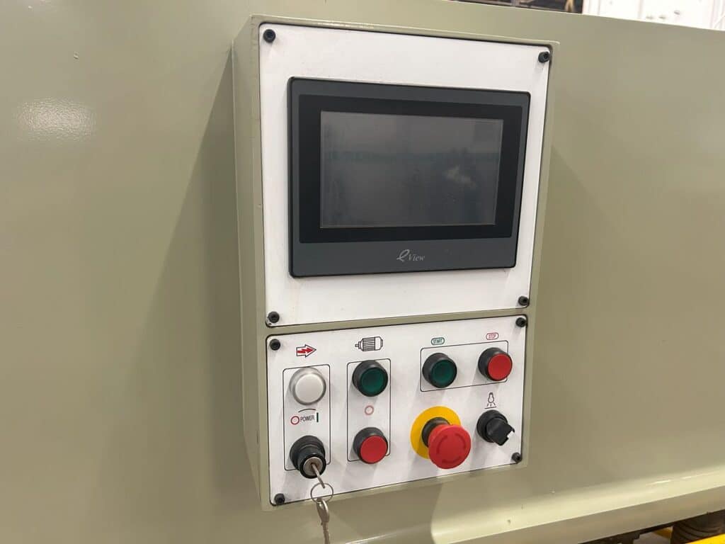 Touch Screen Operated CNC Control, 36″ Stroke, Swing-Up Back Gauge, Front Arm Sheet Supports, Squaring Arm