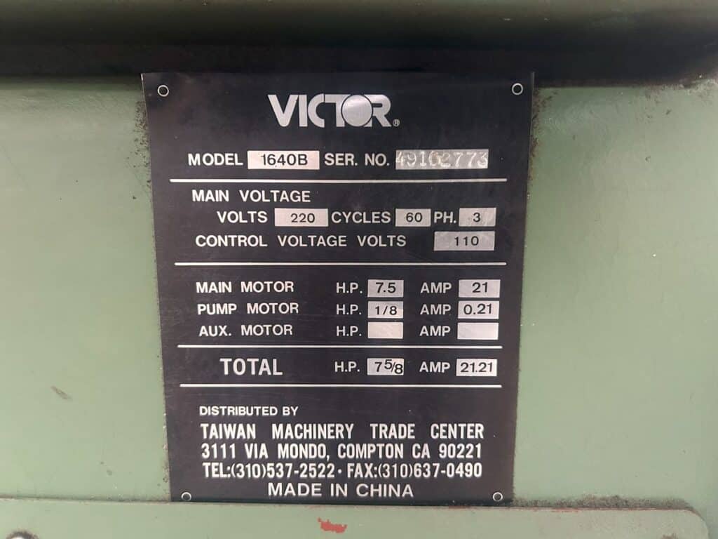 Victor 1640B 16″ x 40″ Gap Bed Engine Lathe