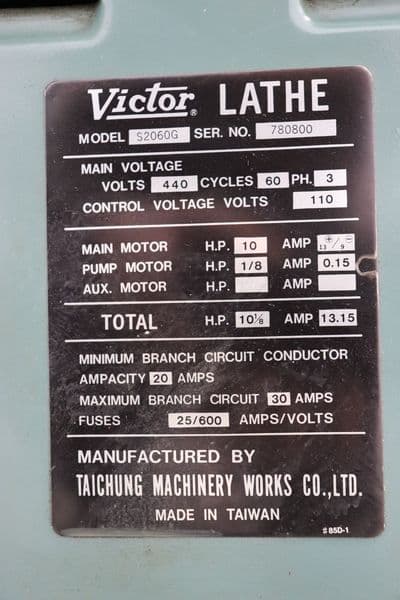 Victor S2060G 20″ x 60″ Gap Bed Engine Lathe